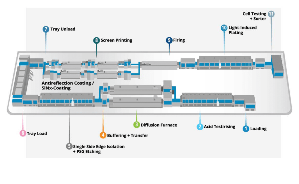 This machine provides the anti-reflective coating on the wafer so that there is a minimum reflection of the sunlight.